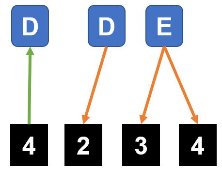 例えば、冒頭の分析から、D = 4は必ず選ぶこととD = 2は選んではいけないことが分かりました。もう少し考えてみたら、A = 1は可能ですが必ずではない。更に、A = 1, B = 2, C = 3とA = 2, B = 3, C = 1二つの組み合わせとも可能な「局所解」の一部としての存在です。
