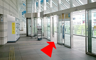 9突き当りのドアを抜けて、すぐに右へ抜けてくだい。雨の日はここから傘をお使いください。