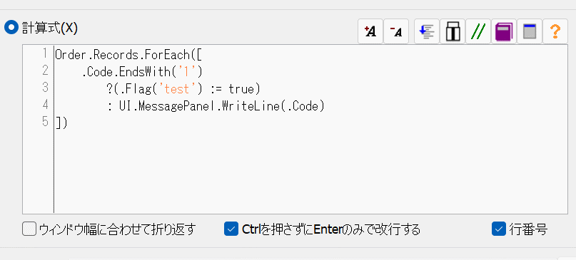 計算式編集画面で、選択行をボタンによりコメントアウトできるようになりました。 「Ctrl + /」のショートカットキーでも同様の操作が可能です。