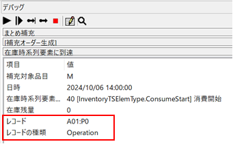 主にプロジェクトの導入・開発時において、 「なぜこの補充オーダーが生成されたのか?」を調べたくなることもあると思います。 そのときに役立つ機能として、補充オーダー生成メソッドのブレイクポイント「在庫時系列要素に到達」で 定義済み変数 $_record を利用できるようにしました。 これによって、在庫量が増減するきっかけとなった対象が見えるため、調査しやすくなります。